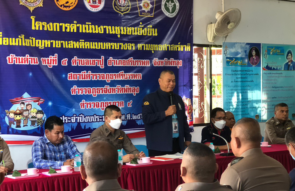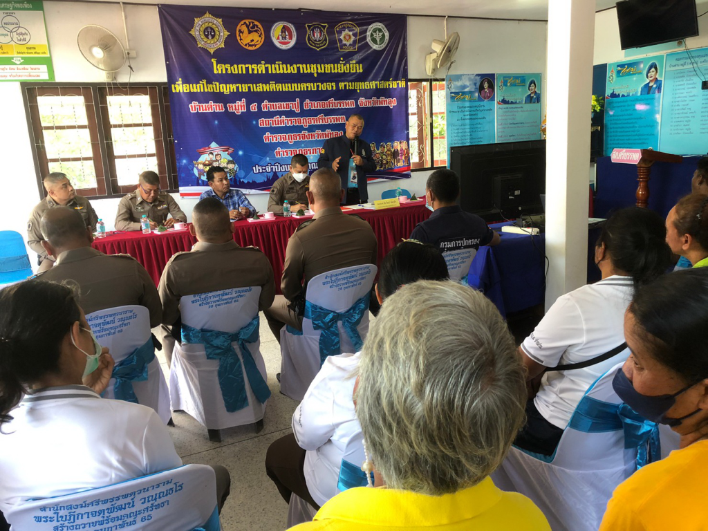 โครงการชุมชนยั่งยืน ข่าวภารกิจผู้บังคับบัญชา >> เมื่อวันที่ 2 พ.ค.66 เวลา 09000 น. พล.ต.ต.ชัยวัฒน์ หัดกล้า หัวหน้าวิทยากรต้นแบบชุมชนยั่งยืน ของสำนักงานตำรวจแห่งชาติ พร้อมคณะเดินทางมาตรวจเยี่ยมโคงการชุมชนยั่งยืนของ สภ.ศรีบรรพต หมู่ที่ 5 ต.เขาปู่ อ.ศรีบรรพต จ.พัทลุง โดยมี พ.ต.อ.ภาสกร ภักดีวานิช รอง ผบก.ภ.จว.พัทลุง, พ.ต.อ.บัญชา มีบุญ ผกก.สภ.ศรีบรรพต และ หัวหน้าสถานีตำรวจในสังกัด จำนวน 8 สถานี ให้การต้อนรับ